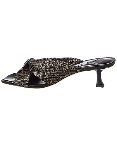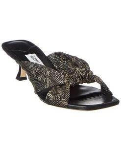 - Avenue 50 Jacquard Sandal in black JC logo jacquard textile with knot accent