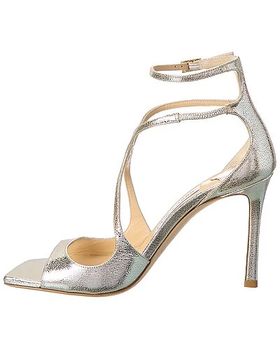 - Azia 95 Glitter Leather Sandal in champagne glitter leather and gold-tone hardware with strappy design and squared toe