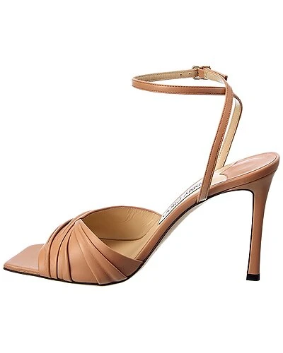 - Basil 95 Leather Sandal in caramel leather and gold-tone hardware with wrapped leather design