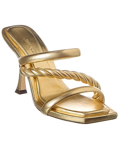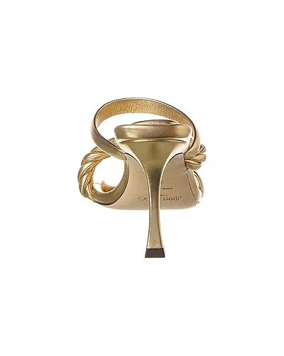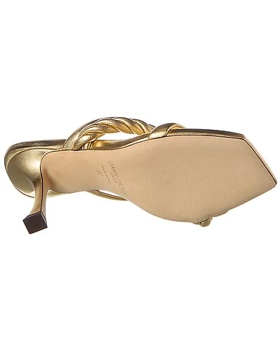 - Diosa 90 Leather Sandal in gold leather with braided strap and squared toe