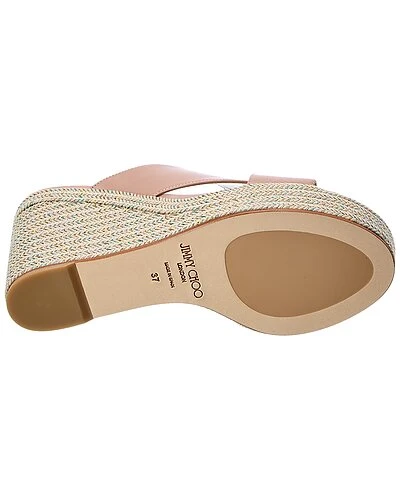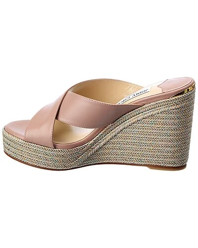 - Dovina 100 Leather Wedge Sandal in ballet pink leather and gold-tone hardware with braided metallic wedge