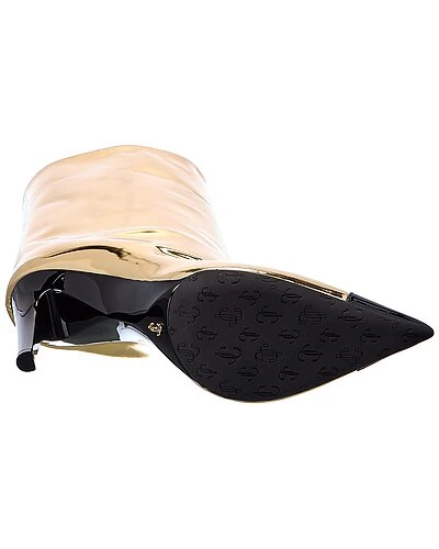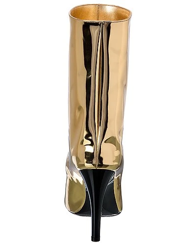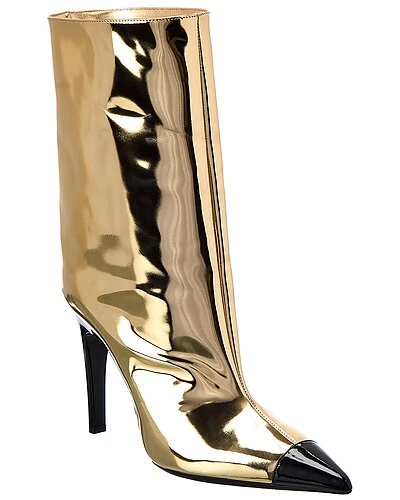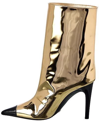 - Cierra 100 Leather Bootie in gold liquid metal leather and black patent leather with pointy-toe