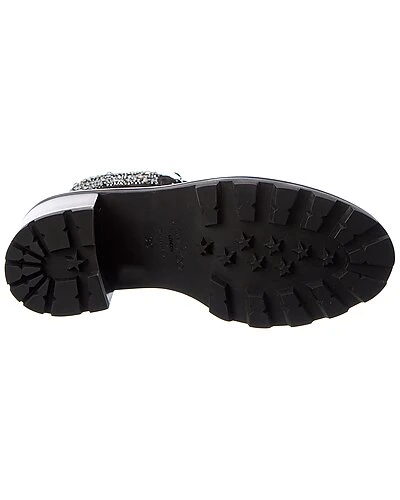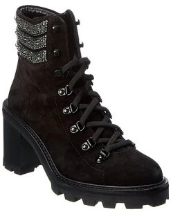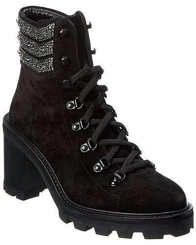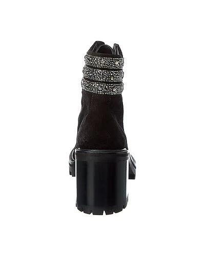 - Eshe 65 Suede Bootie in black suede with chunky sole and crystal embellishments