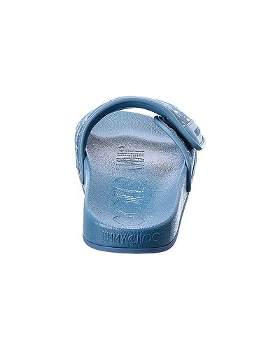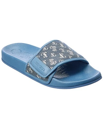 - Fitz/F Denim & Leather Slide in denim canvas and smoky blue leather with embossed logo