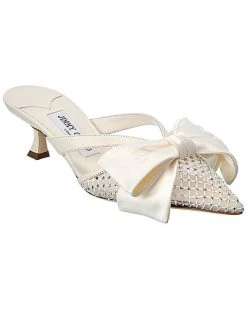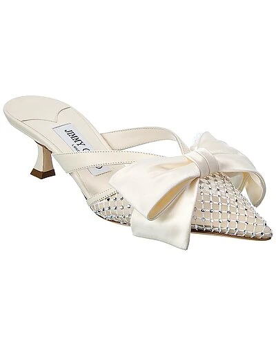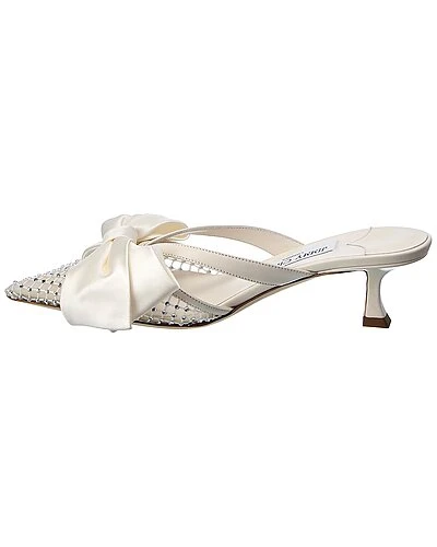 - Flaca 50 Mesh & Leather Mule in ivory crystal mesh and leather with satin bow