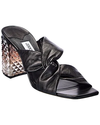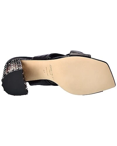 - Haiti 85 Leather Sandal in black leather with twisted design and faceted heel with star embellishments