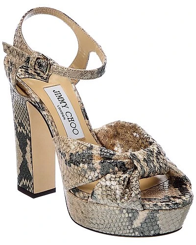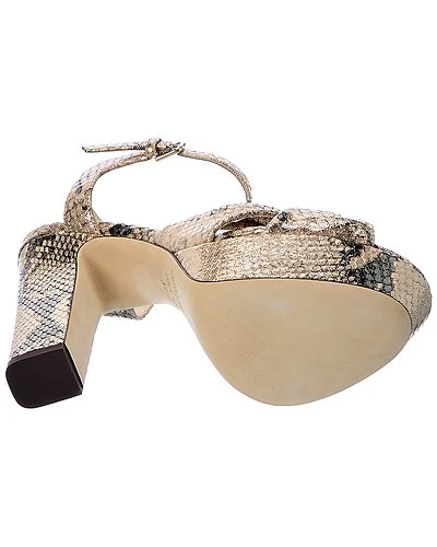 - Heloise 120 Snake-Embossed Leather Platform Sandal in platinum snake-embossed leather and gold-tone hardware with knot accent