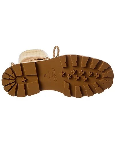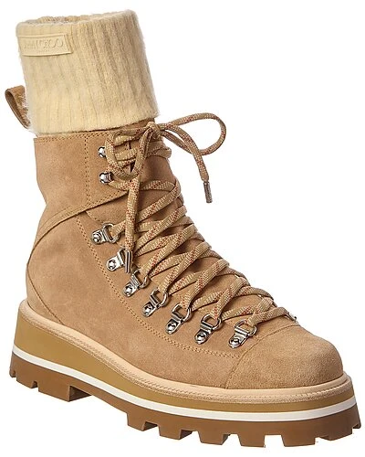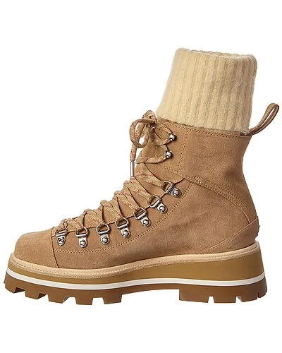 - Chike Suede Bootie in stone suede and silver-tone hardware with fold-over ribbed cuff and patterned laces