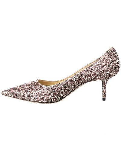 - Love 65 Glitter Pump in rose mix coarse glitter fabric with pointy-toe