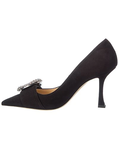 - Melva 90 Suede Pump in black suede and silver-tone hardware with crystal-embellished buckle