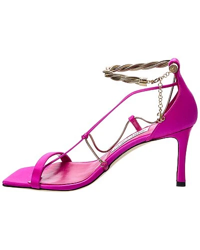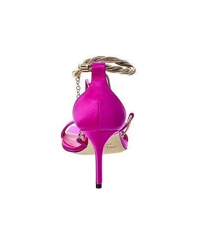 - Oriana 75 Satin Sandal in fuchsia satin and gold-tone hardware with twisted ankle strap
