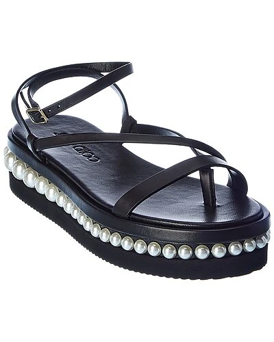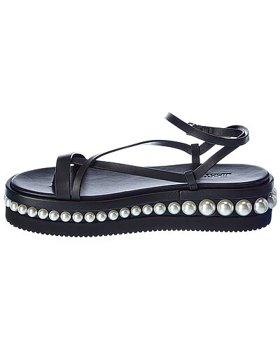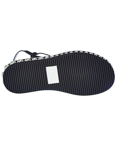 - Pine Leather Sandal in black leather and silver-tone hardware with pearl bead stud trim