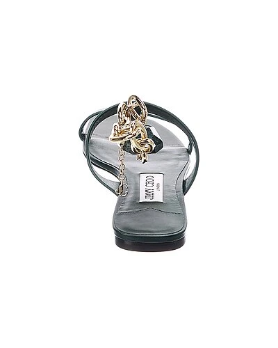 - Reed Leather Sandal in dark green leather and gold-tone hardware with chain ankle strap