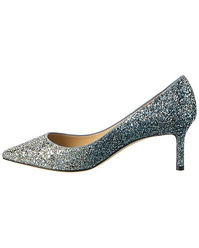 - Romy 60 Glitter Pump in silver and dusk blue glitter fabric with pointy-toe