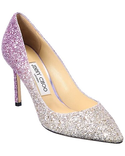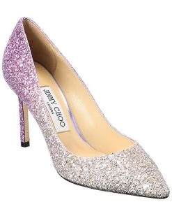 - Romy 85 Glitter Pump in champagne/pink violet glitter textile with pointy-toe
