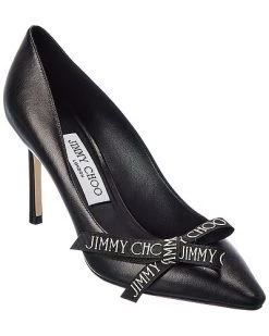 - Romy 85 Leather Pump in black leather with logo-printed bow