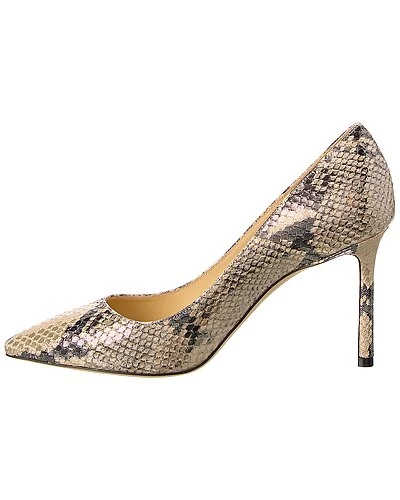 - Romy 85 Snake-Embossed Leather Pump in platinum snake-embossed leather with pointy-toe