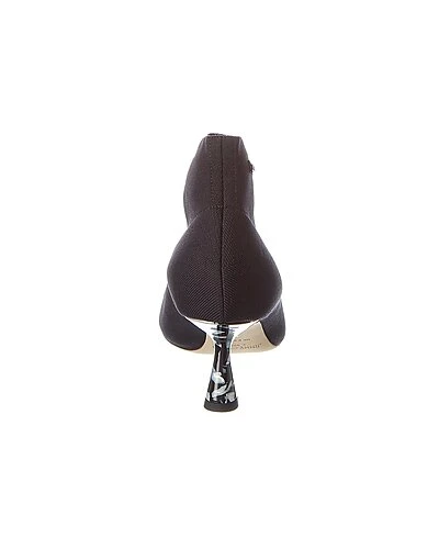- Saber 65 Sock Boot in black textile and gunmetal-tone hardware with logo accent and marble heel