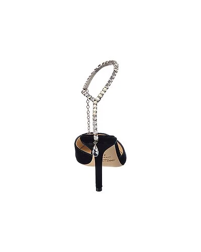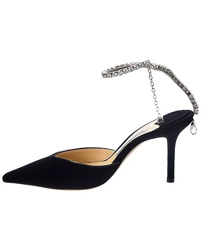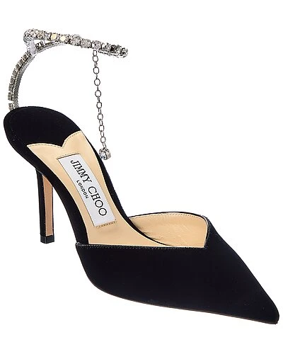 - Saeda 85 Velvet Pump in black suede and silver-tone hardware with crystal ankle strap