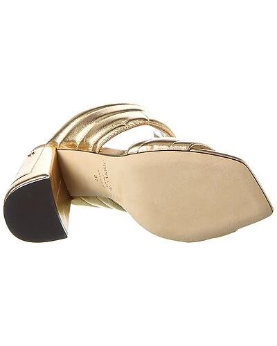 - Themis 100 Leather Sandal in gold quilted leather and gold-tone hardware with logo accent and squared toe