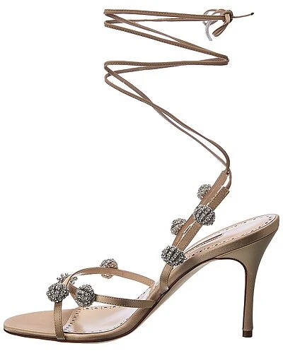 - Elsaka 90 Satin Sandal in nude satin and silver-tone hardware with crystal-embellished bobbles