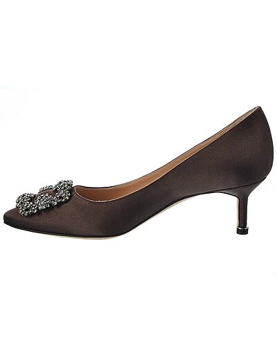 - Hangisi 50 Satin Pump in grey satin and silver-tone hardware with crystal-embellished buckle