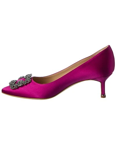 - Hangisi 50 Satin Pump in pink satin and silver-tone hardware with crystal-embellished buckle