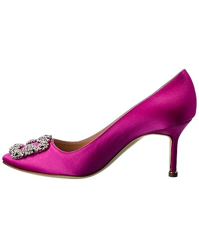 - Hangisi 70 Satin Pump in pink satin and silver-tone hardware with crystal-embellished buckle