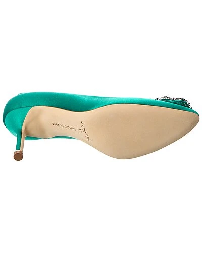 - Hangisi 70 Satin Pump in green satin and silver-tone hardware with crystal-embellished buckle