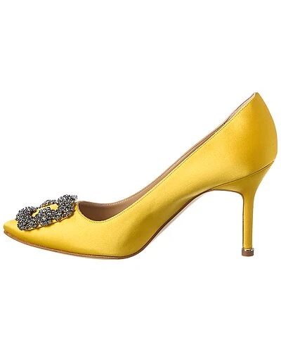 - Hangisi 90 Satin Pump in yellow satin with crystal-embellished buckle