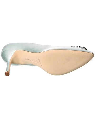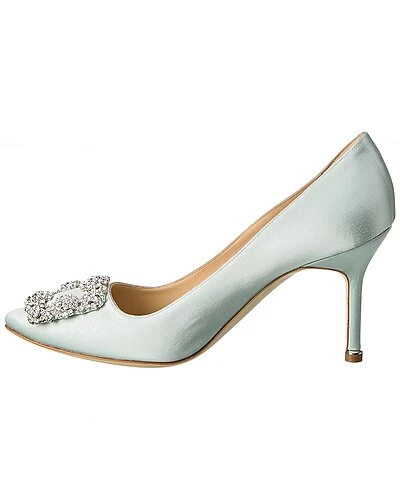 - Hangisi 90 Satin Pump in light green satin with crystal-embellished buckle