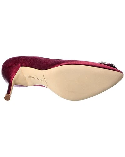 - Hangisi 90 Satin Pump in red satin and silver-tone hardware with crystal-embellished buckle