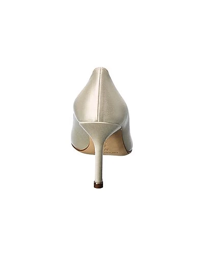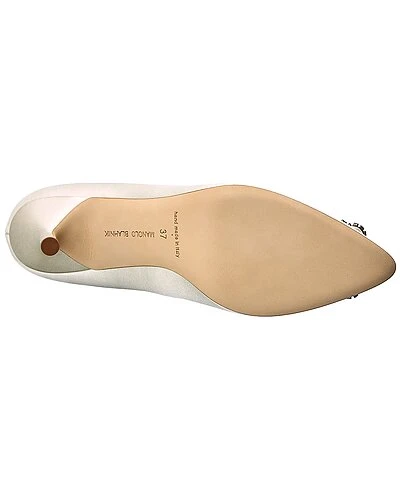- Hangisi 90 Satin Pump in white satin and gunmetal-tone hardware with crystal buckle