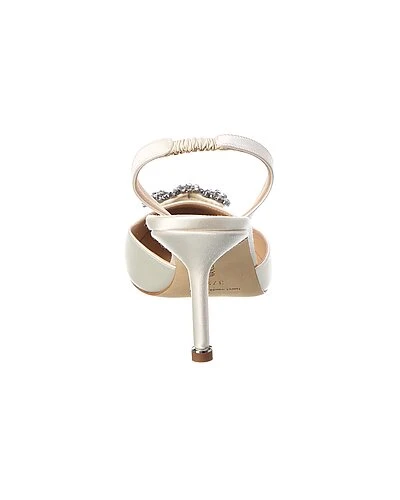 - Hangisli 70 Satin Slingback Pump in white satin with crystal-embellished buckle