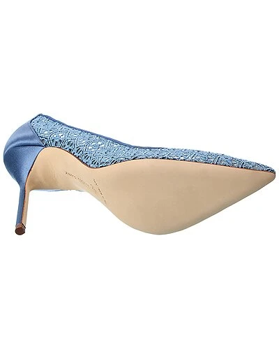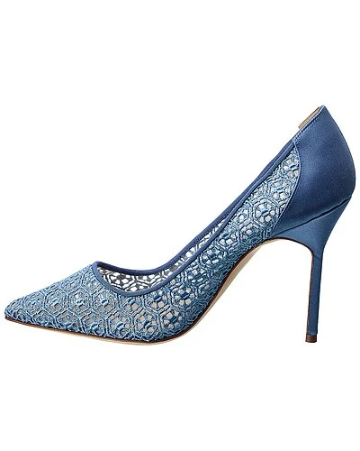 - BBLA 105 Lace & Satin Pump in blue lace and satin with pointy-toe