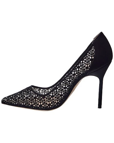 - BBLA 105 Satin & Lace Pump in black satin and lace with pointy-toe and grosgrain trim