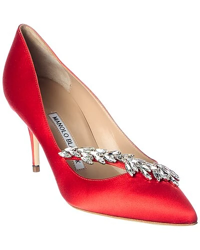 - Nadira 70 Satin Pump in bright red satin with crystal accent