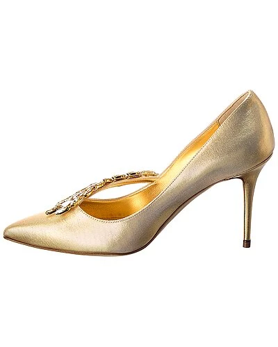 - Nadira 90 Pump in gold textile and gold-tone hardware with crystal detailing