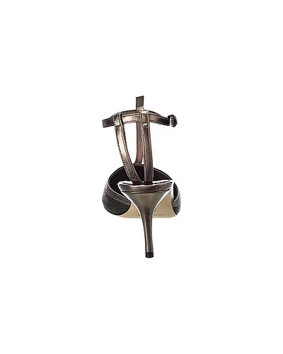 - Piglie 70 Wool & Leather Pump in dark green wool and metallic leather and dark silver-tone hardware with pointy-toe