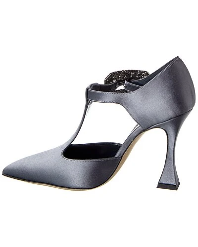 - Martura 105 Satin Pump in blue satin and silver-tone hardware with crystal-embellished buckle