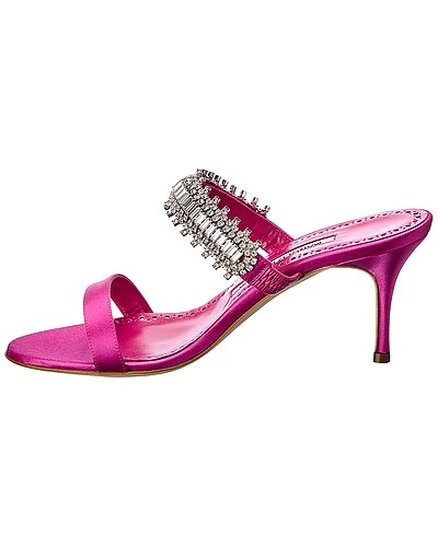 - Sako 70 Satin Sandal in purple satin and silver-tone hardware with crystal strap