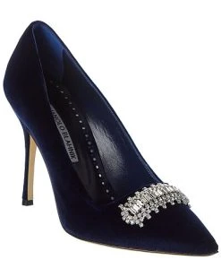 - Bottara 105 Velvet Pump in blue velvet and silver-tone hardware with crystal embellishments