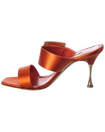 - Tuliaba 90 Satin Sandal in orange satin and gold-tone hardware with crystal-embellished buckle