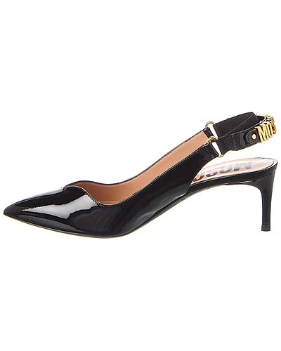 - Design details: gold-tone hardware, elasticized slingback strap with logo lettering
