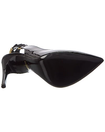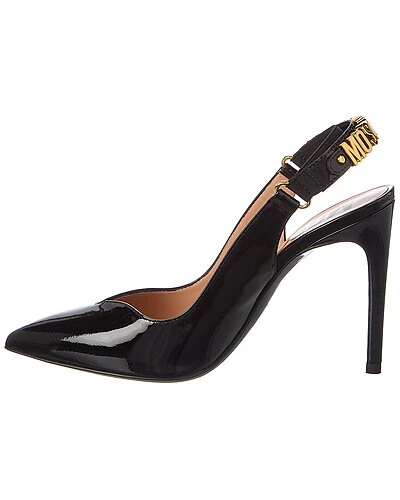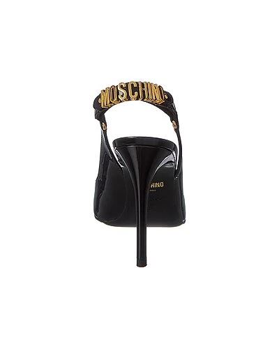 - Design details: gold-tone hardware, elasticized slingback strap with logo lettering