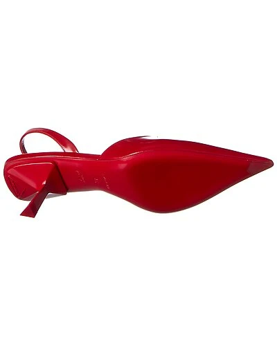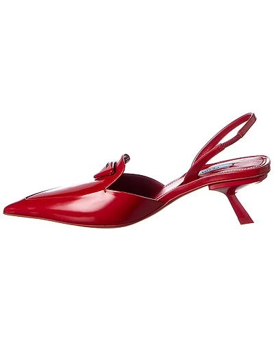 - Brushed Leather Pointy-Toe Slingback Pump in red brushed leather with logo accent