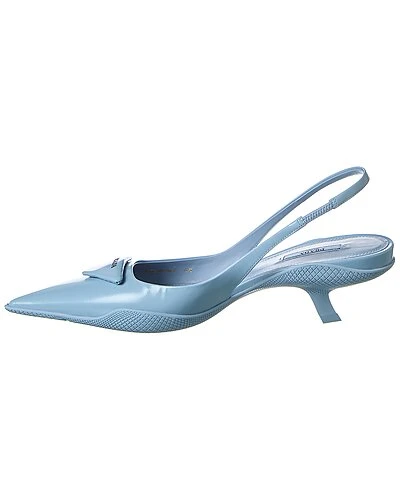 - Brushed Leather Pointy-Toe Slingback Pump in blue leather with logo accent