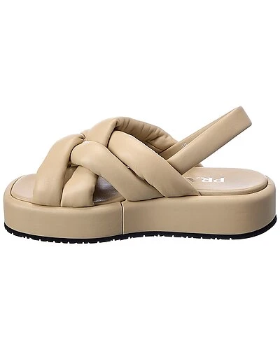 - Leather Platform Sandal in beige leather with padded design and elasticized strap