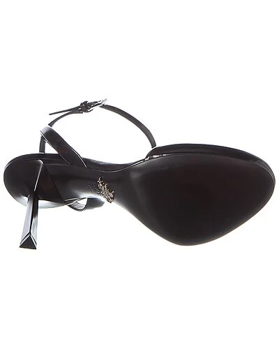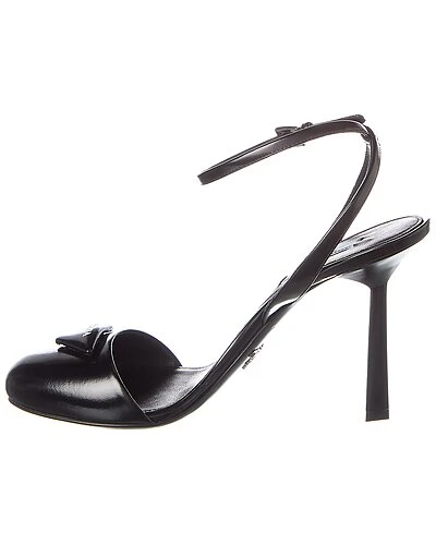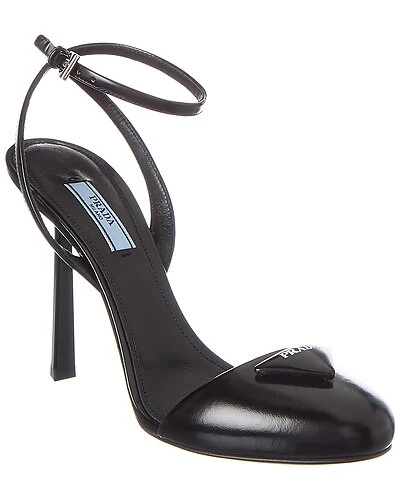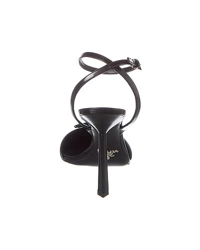 - Logo Leather Pump in black leather and steel finish hardware with triangle logo accent