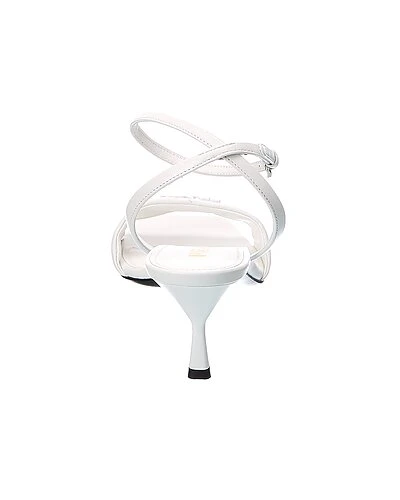 - Logo Leather Sandal in white leather and silver-tone hardware